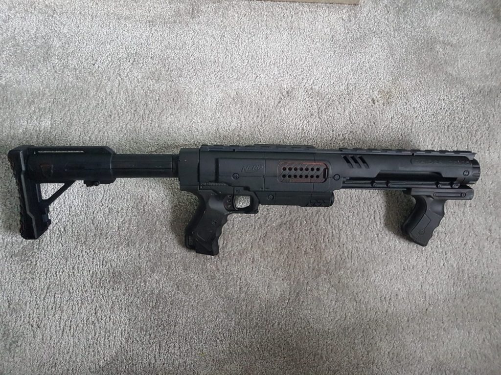 Alien is one of my favourite films of all time, just the perfect space horror and it never gets old. So Ripley’s character was an obvious candidate for cosplay, being such an iconic, badass female hero. I was lucky enough to have similar boiler suit style clothing in the form of my art studio overalls. All I needed to do was adapt them to make the leg cuffs more fitted and sew on some custom made badges I purchased from ebay. The weapon she uses was a little bit more complex. I watched a few video tutorials from other makers who had put one together and realised nerf guns bore the closest resemblance to the gun she uses in the film. So after another scour of ebay, I found one for £8. Getting myself some matt black spray paint, I painted the entire thing and it all came together perfectly.
